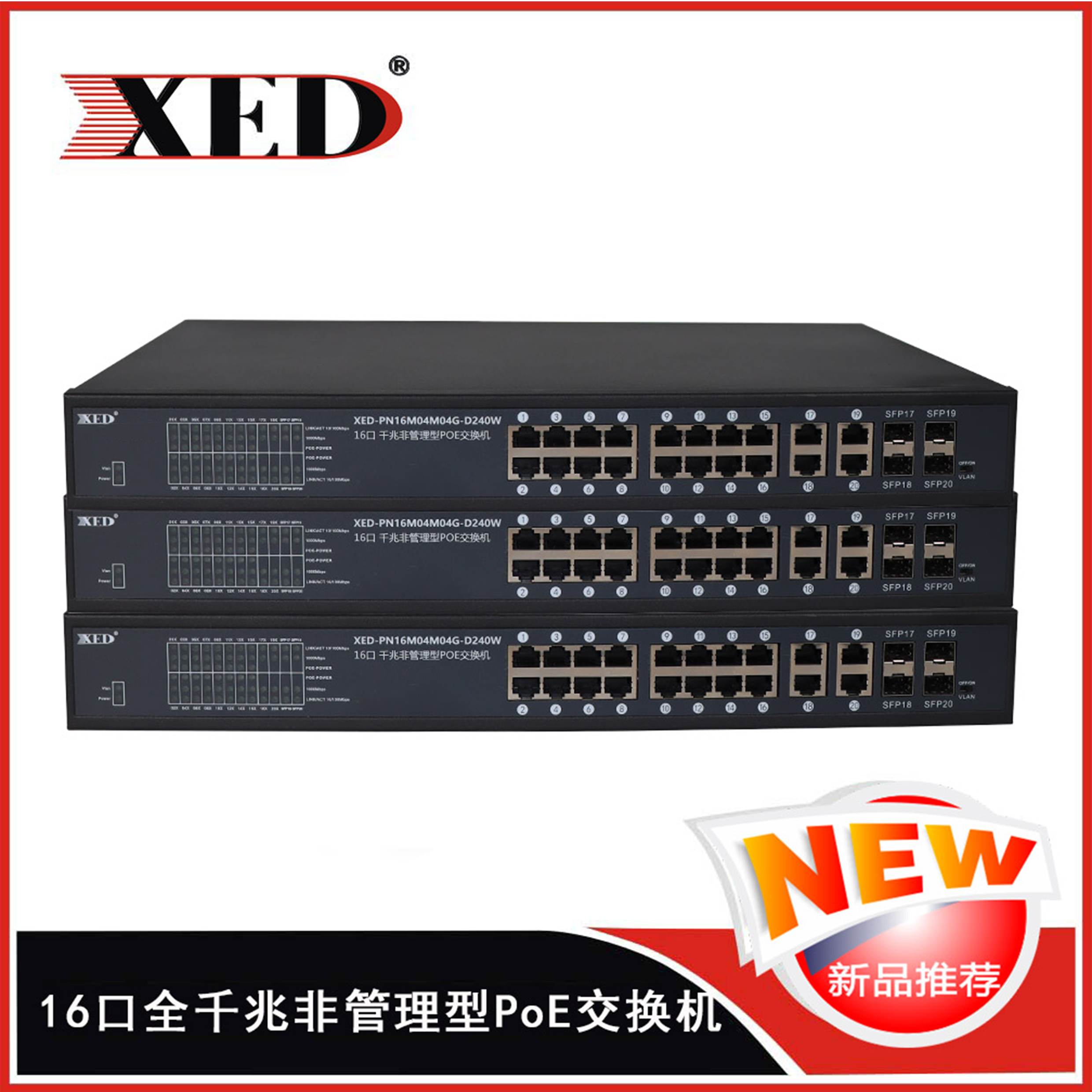 • 16FE+4GCombo千兆非管理型PoE交換機   XED-PN16M04M04G-D240W