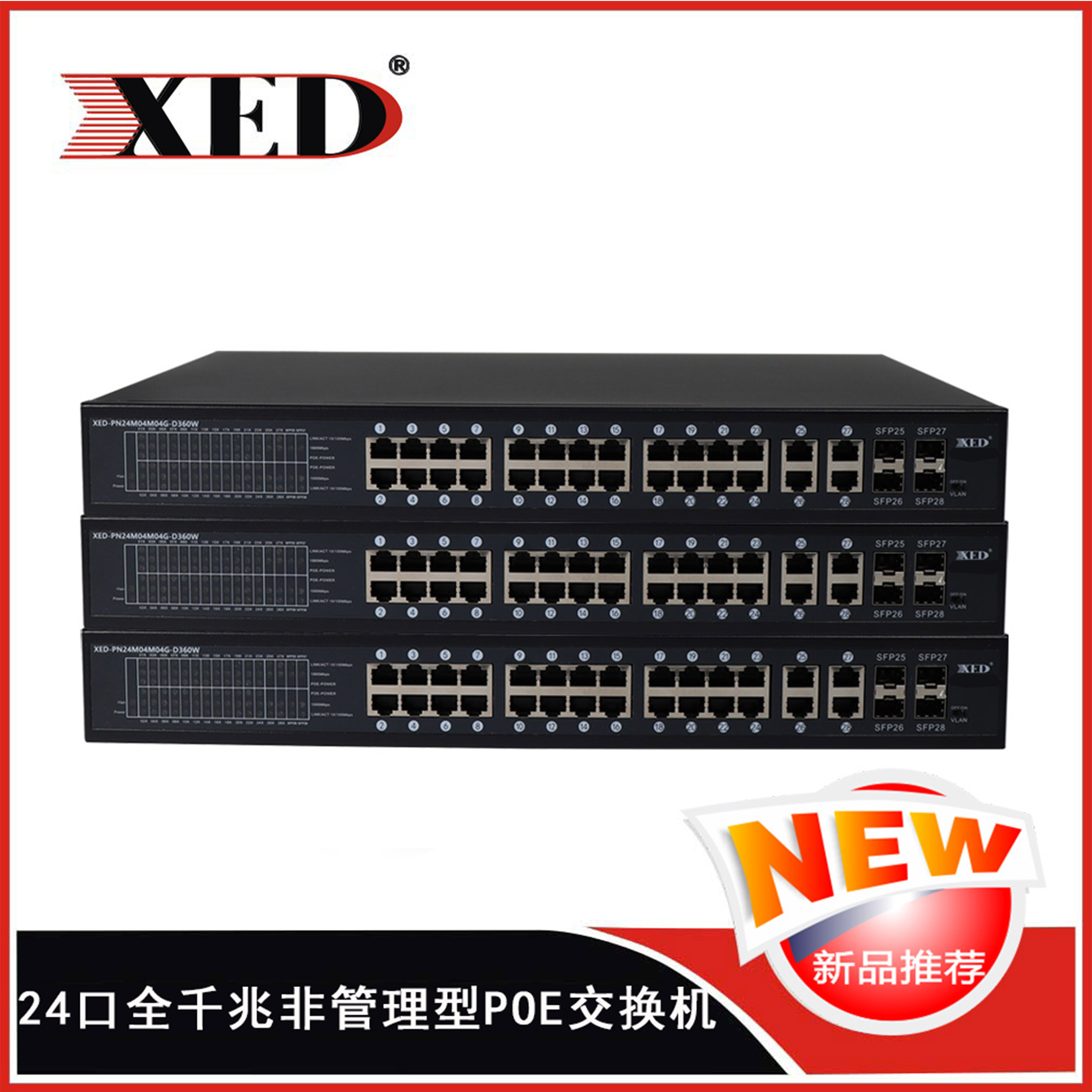 • 24FE+4GCombo千兆非管理型PoE交換機   XED-PN24M04M04G-D360W