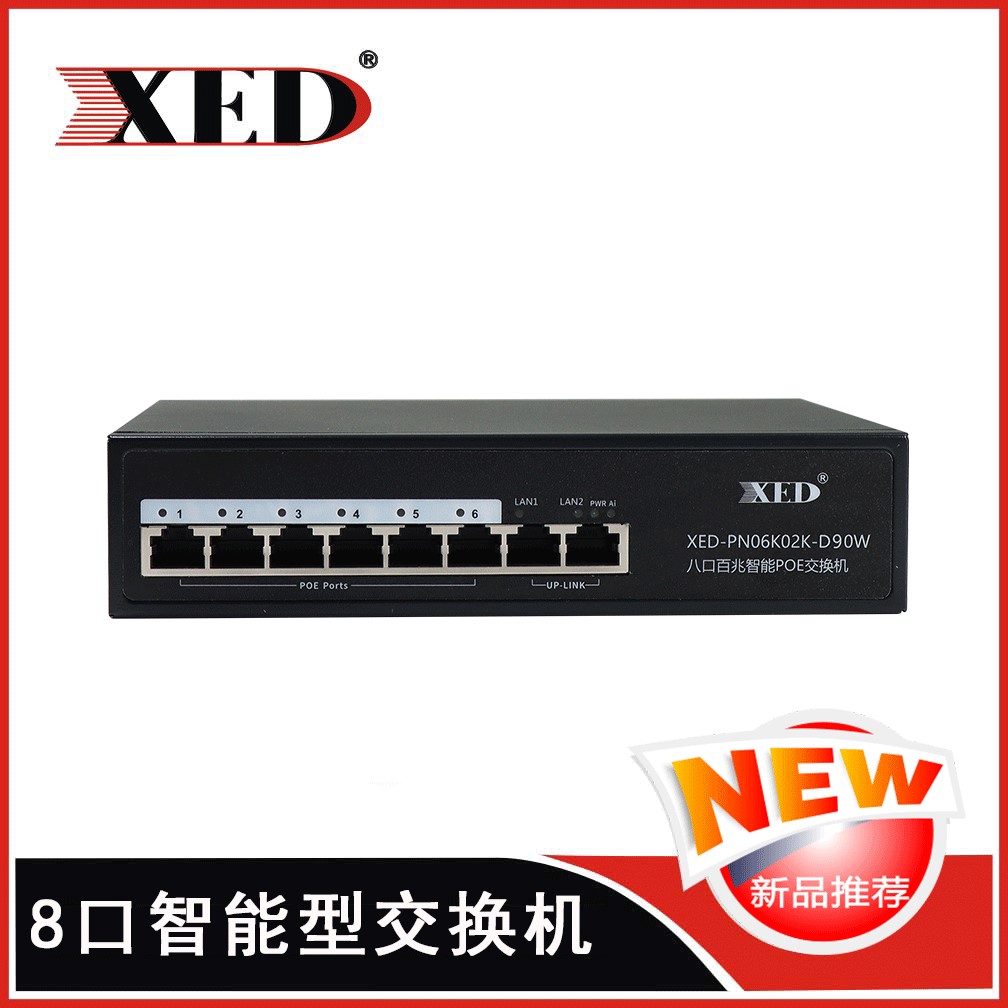 XED-PN06K02K-D90W 6+2 百兆非管理型 POE交換機 可通過網線為無線AP,攝像頭等PD設備提供最大單端口30W...
